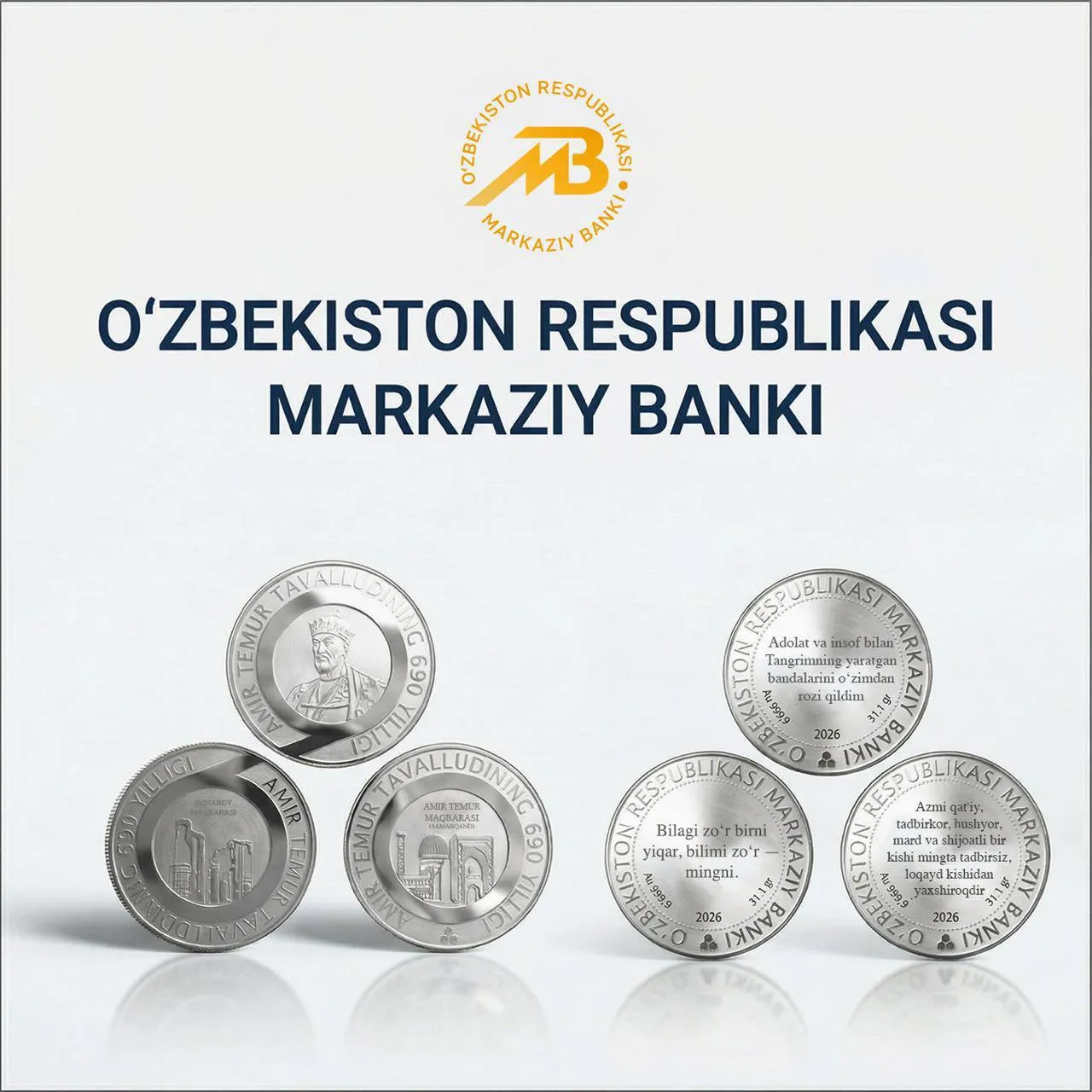 Амир Темур таваллудининг 690 йиллиги муносабати билан Ўзбекистон Республикаси Марказий банки эсдалик тангалари ва сувенир тўпламлари савдосини йўлга қўйди.