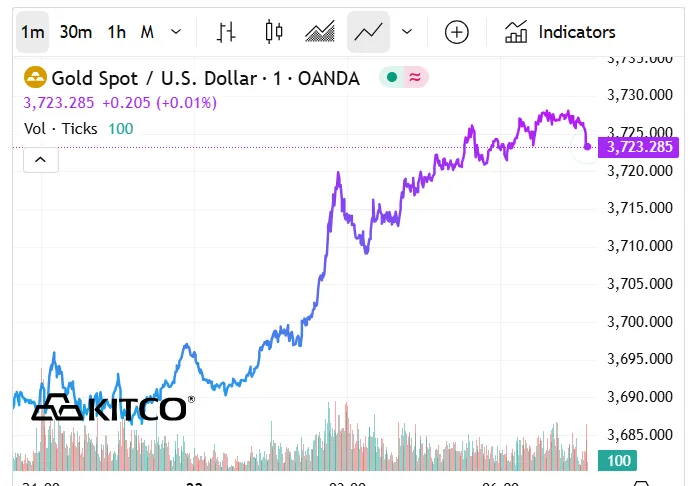 Хусусан, 22 сентябрь куни олтин нархи бир троя унция учун $3 720 дан ошиб, янги рекорд қайд этди.