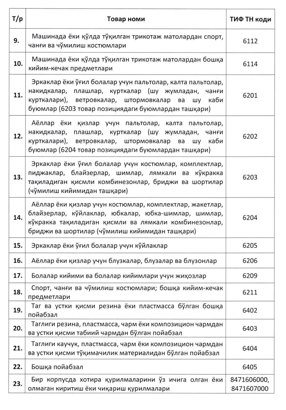 Юқоридаги икки рўйхатга киритилмаган бошқа турдаги товарлар жисмоний шахсларнинг шахсий эҳтиёжлари учун сотилганда эса божхона имтиёзлари қўлланмайди ва умумий белгиланган тартибдаги божхона тўловлари ундирилади.