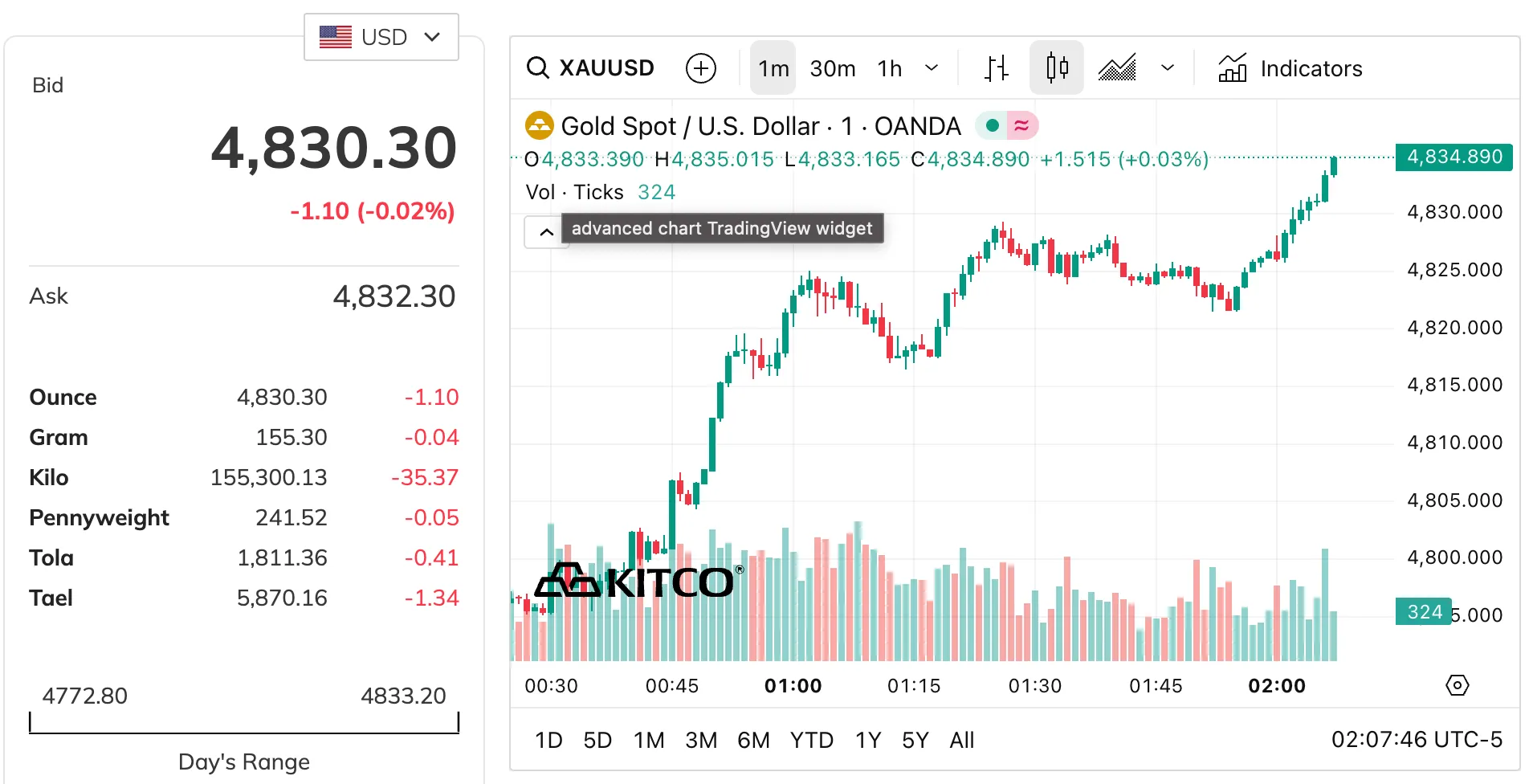 На данный момент стоимость одного грамма золота составляет 1 943 380 сумов. Этот показатель вырос на 2,56% всего за один день. В результате стоимость 5-граммового золотого слитка превысила 9,7 миллиона сумов.