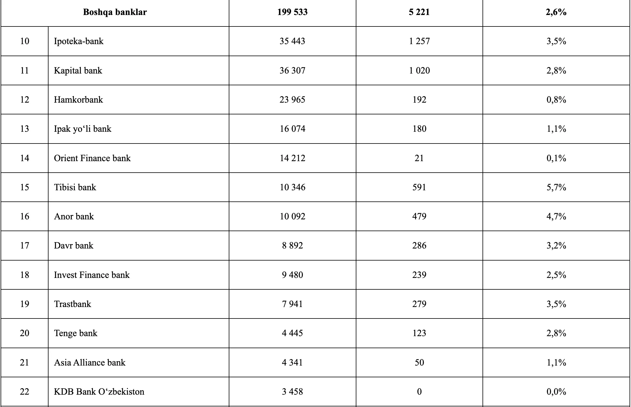 Shuningdek, quyidagi banklarda ham muammoli kreditlar qisqargan: