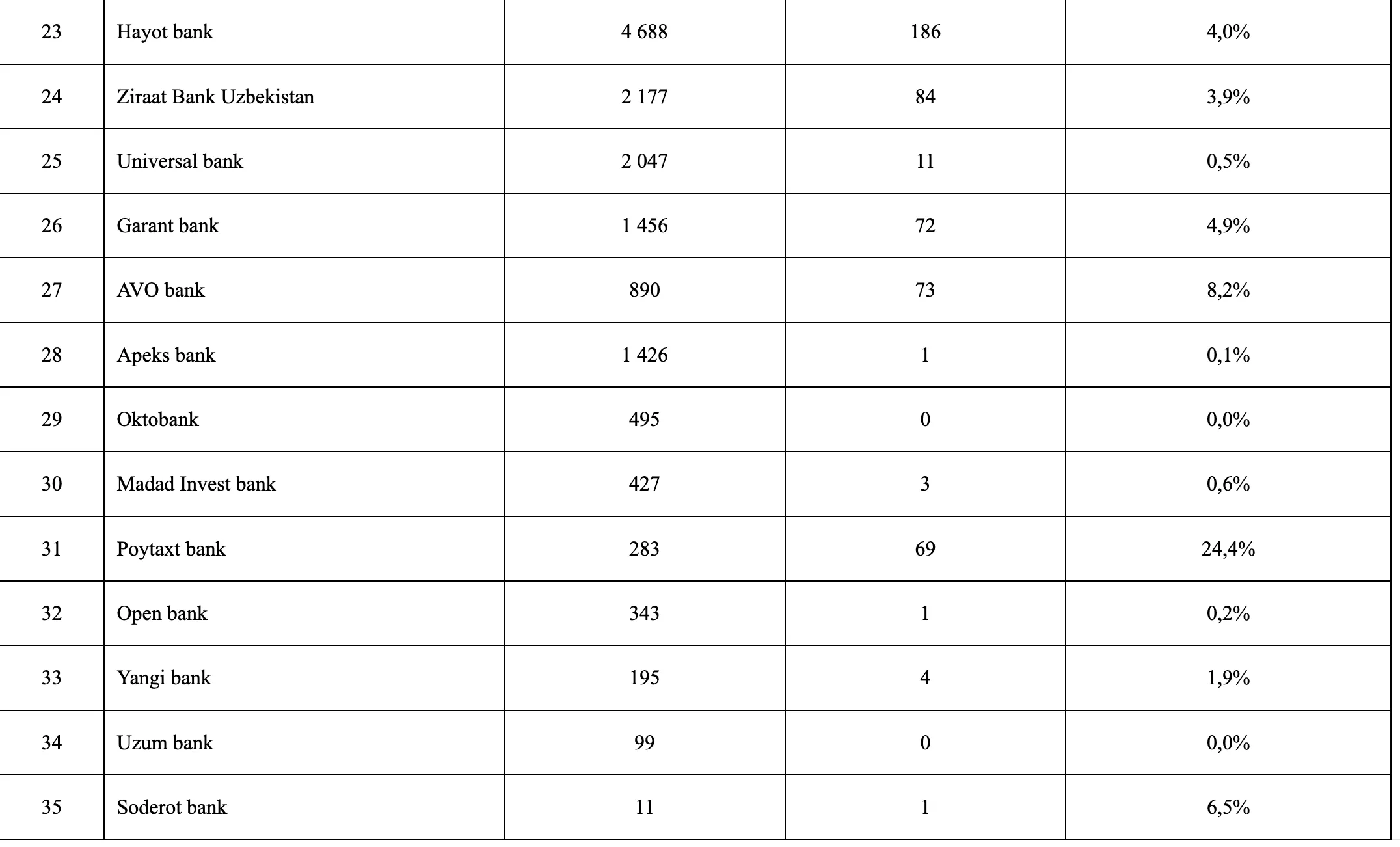 - Hayot Bank – 186 mlrd soʻmga